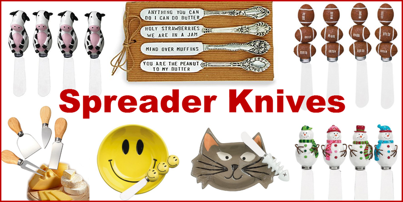 LOTS of really cute and unique butter spreader knives and cheese knife sets. Thanksgiving knife sets, Halloween, Christmas, Winter and Fall-themed spreader knives, too. Some really awesome spreader knives for football parties, snowmen, cows, bumble bees, sea horses, and SO much more. These spreader knives are perfect for buttering corn and cookouts, parties, putting in…